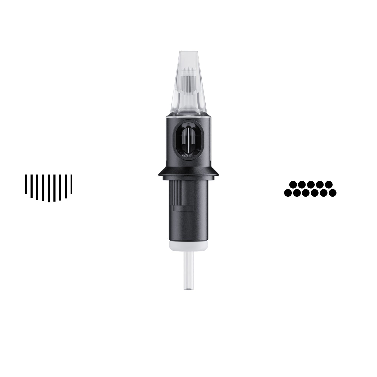 The Cheyenne Safety Cartridges are sterile packed and ready to use. The tattoo needle cartridges are available in 20-piece boxes.The magnum tattoo needles consisting of two rows are great for filling and shading. The soft edge magnum tattoo needles (or "curved magnums") have a slightly rounded front to avoid the umbrella effect (the skin doesn't evade the needles in the middle and the design remains even). Thanks to the rough surface, the textured tattoo needles carry a higher amount of ink and are perfect for quick filling. All Cheyenne Safety Cartridges contain a patented Safety Membrane, which prevents blood and tattoo ink from entering the tattoo grip and the associated cross-contamination.